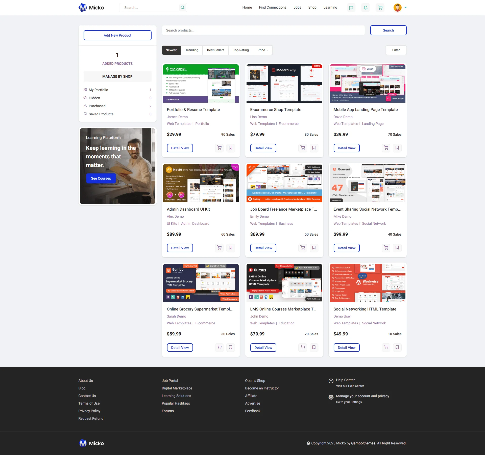 Micko is a complete Laravel-based solution that combines digital product selling, online courses, and community interaction into one unified platform.