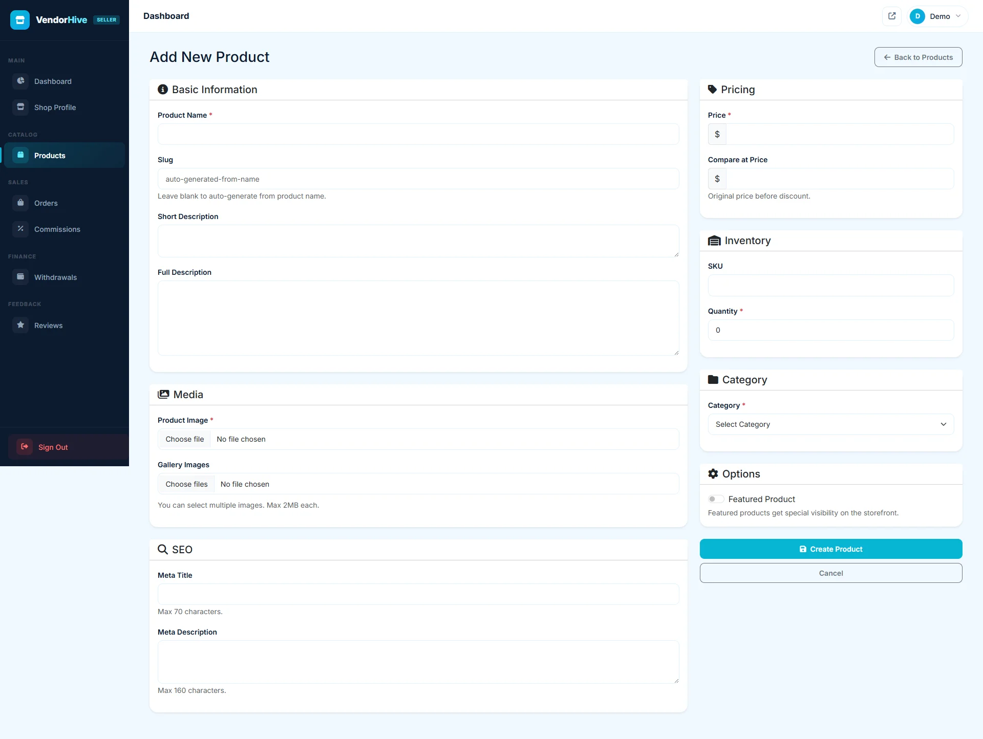 Every vendor gets their own panel to manage their shop profile, products, orders, commissions, withdrawal requests, and customer reviews.