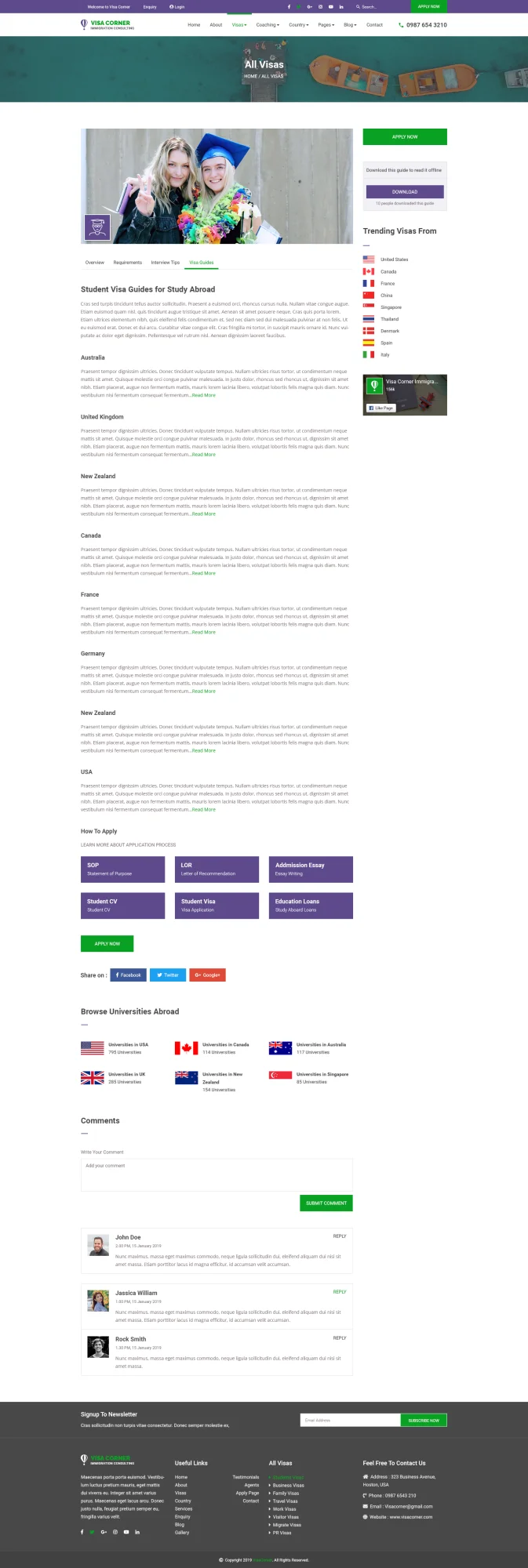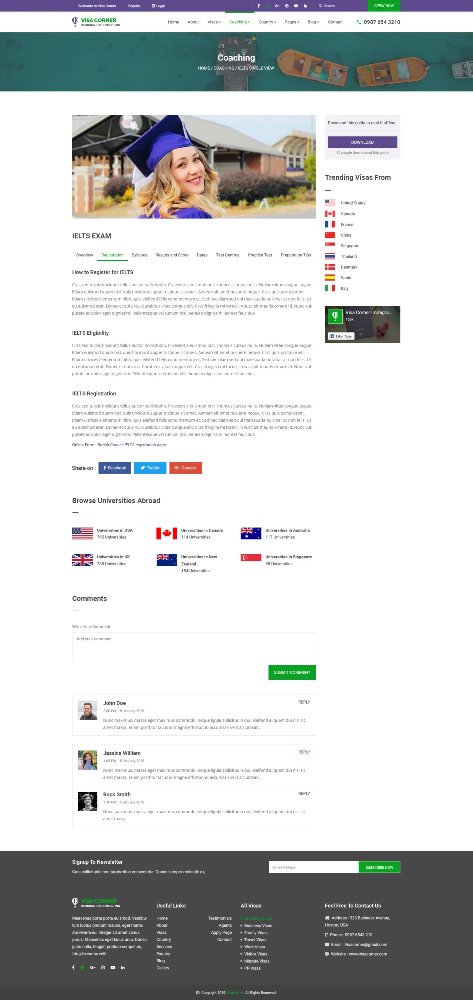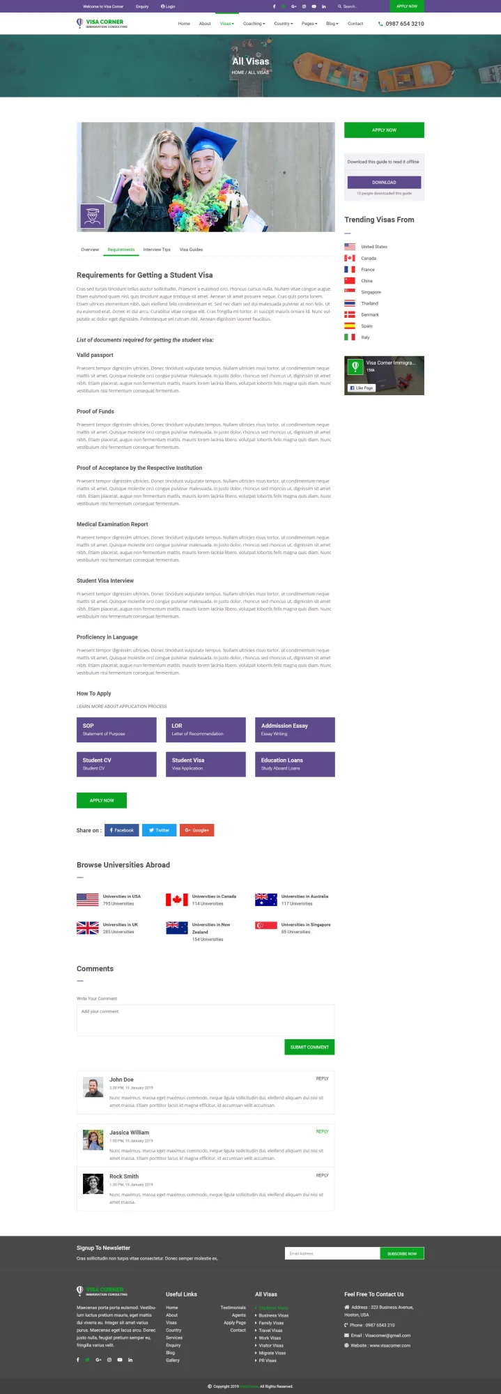 This visa corner immigration consulting psd template designed for visa service company, an immigration lawyer, agent, professional migration agent, migration consultancy, legal immigration service provider, overseas career, coaching service online or offline, and spoken English coaching classes. Each PSD file is fully layered, named and properly grouped into different categories for easy recognization. You can easily edit the PSD file and make necessary adjustments. Font Info This PSD Template uses Google Web Fonts which is free to download and use. Make sure you have these fonts are installed in your system before editing the PSD files.