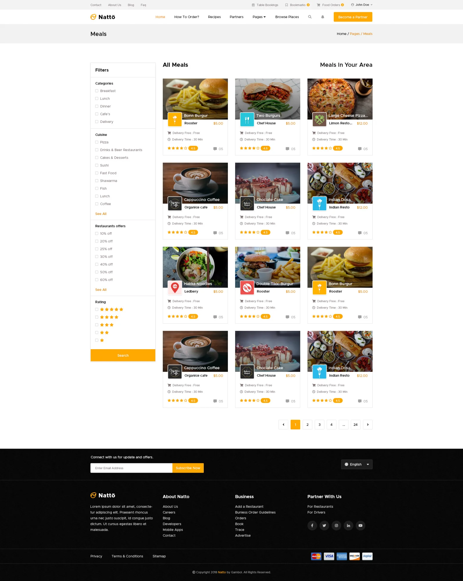 Natto is modern and fresh design template for food delivery. Natto online food ordering system for local restaurants. Browse local restaurants delivery, menus, ratings and reviews, coupons and more. Food ordering online and upload recipes video. 60 PSD files included – The design is very creative and unique, and also very easy to customize and use.
